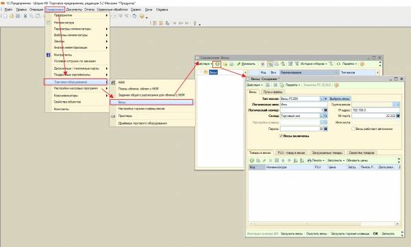 2. В справочнике «Весы» («Справочники» → «Торговое оборудование»):