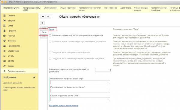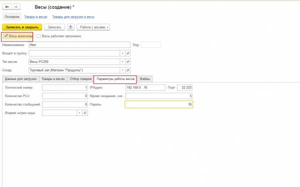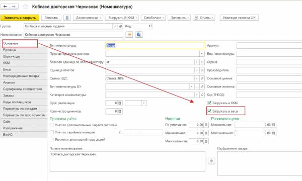 1. На закладке «Основные» надо установить флаг «Загружать в весы».