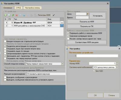 2) В настройках ККМ в основной обработке драйвера указать СНО - основную систему налогообложения, которая используется
