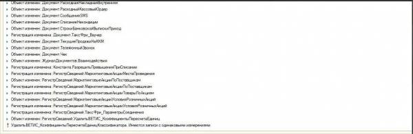 Если при обновлении конфигурации «Торговое предприятие 7» до релиза 7.0.10.1 возникла проблема с принятием изменений и список изменений завершился ошибкой: