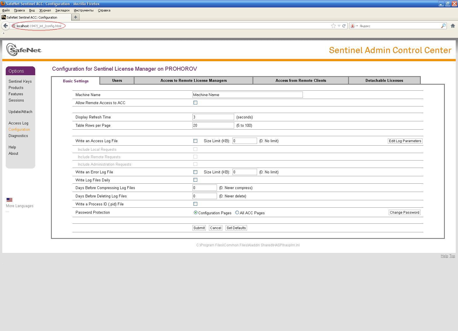 Установленный менеджер лицензий настраивается через браузер. Для этого необходимо открыть в браузере ссылку http://localhost:1947/