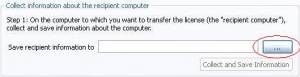 • В поле «Read the recipient information file from» укажите файл с информацией о компьютере, на который будет перенесена лицензия;