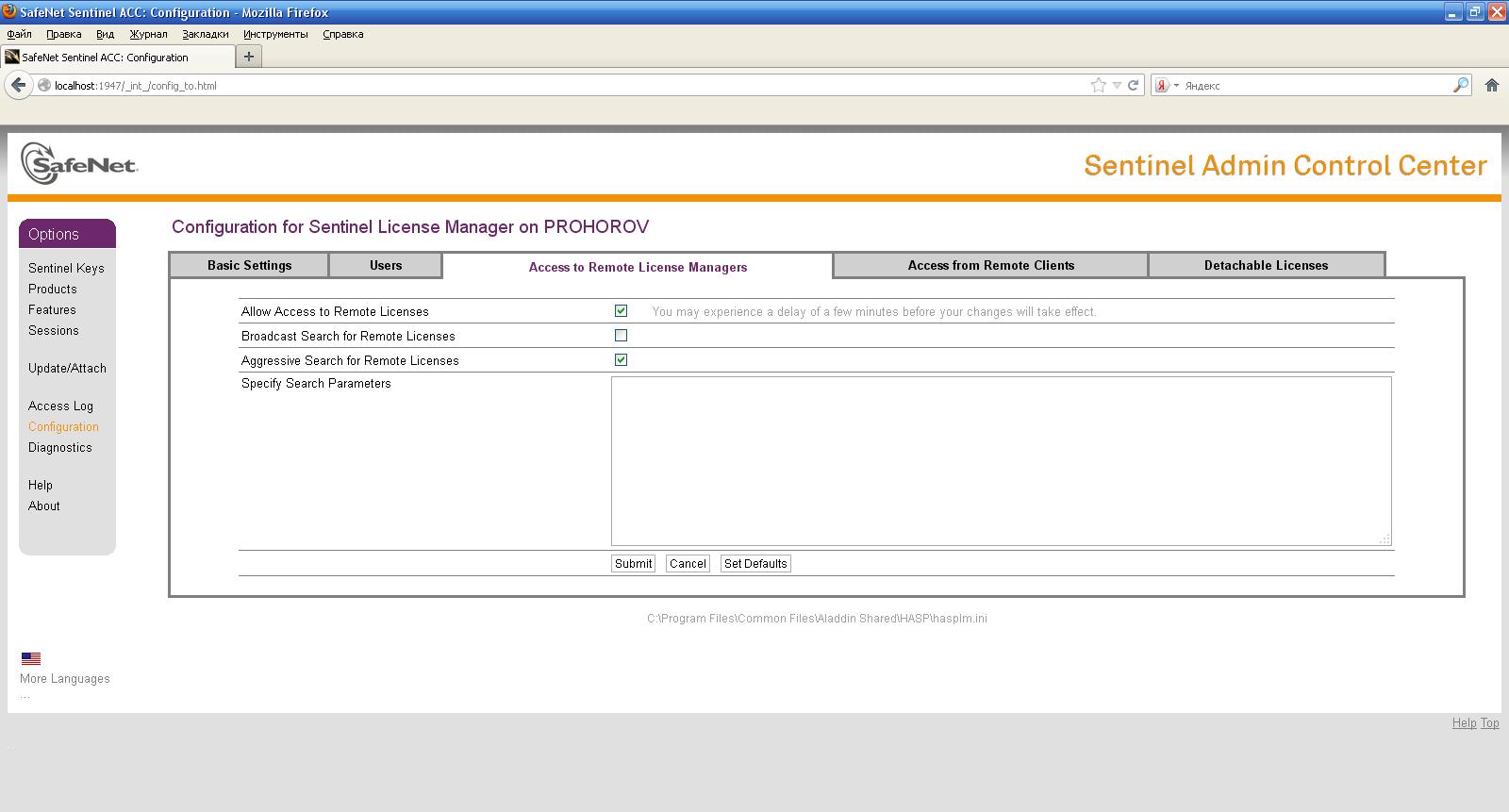 Aggressive Search for Remote Licenses — если флаг установлен, то будет производиться поиск удаленных менеджеров лицензий, даже если они не найдены посредством широковещательной рассылки.