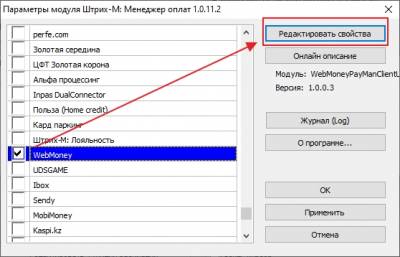 В настройке типов безналичных оплат выбрать модуль интеграции WebMoney, нажать настройки и там указать: