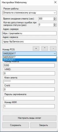 Номер POS: согласно переданным данным из личного кабинета от PayMaster