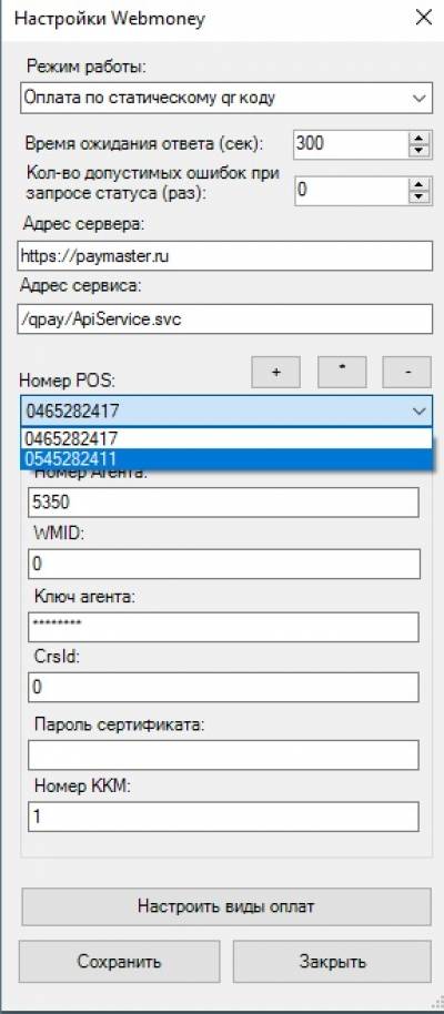В колонке Номер типа оплаты Кассира нужно указать Код (а не номер оплаты в ККМ) предварительно заведенного типа оплаты, соответствующий указанному в строке типу оплаты PayMaster.