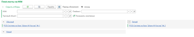 На данной закладке указываются ККМ на которые будет выгружаться плей-лист.