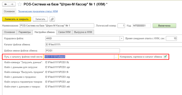 Если установить флаг «Копировать картинки в каталог обмена», тогда при проведении документа «Загрузка ККМ» изображения и видео плей-листа будут копироваться в указанный каталог.