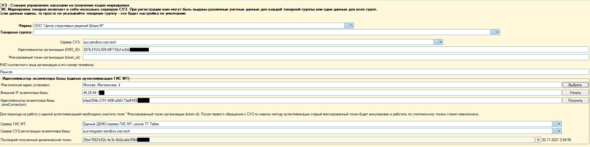 - настройкадинамическоготокена